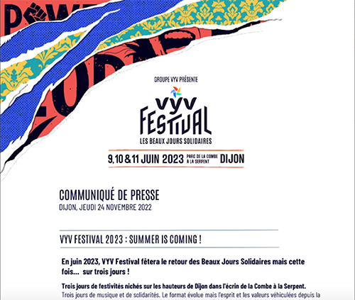 Communiqués et dossier de presse VYV Festival 2023